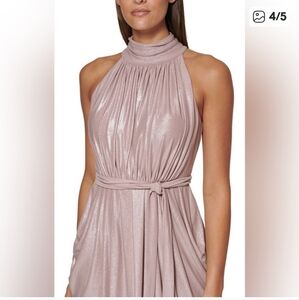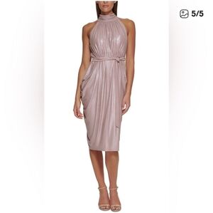Tommy Hilfiger elegant sleeveless dress in mauve with a pleated design. Includes a matching belt for a flattering fit.