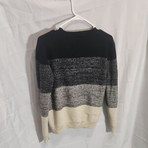 Elevate your wardrobe with this men's crewneck sweater, featuring a sophisticated blend of black, gray, and cream. Perfect for versatile styling and comfort.