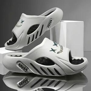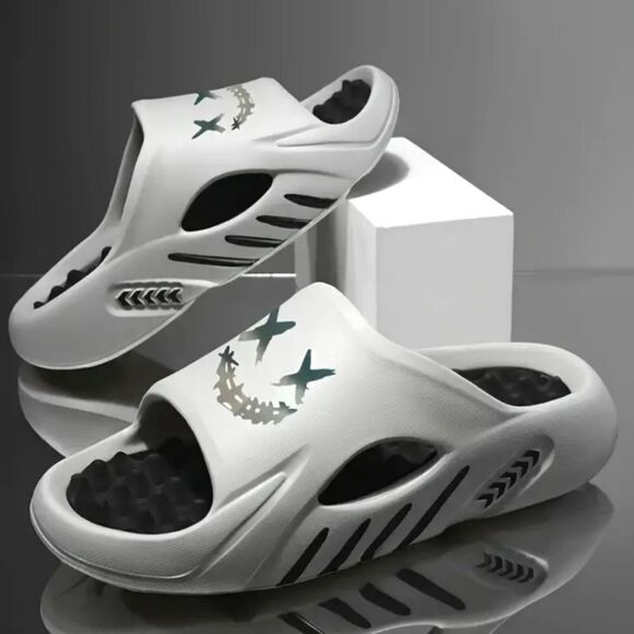 Men's Fashion EVA Slippers with Cartoon Print Design - Breathable, Thick Sole, Massage Comfort with Slip-On Closure, Universal Fit Black and Gray color