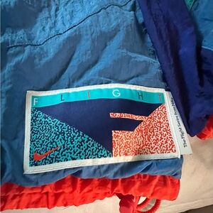 Nike flight track jacket Great condition Lined wind breaker styling Side pockets 1/2 zip front ( pullover) Tricolor (teal, purple, orange) Size 3X Drawstring at waist Arm pit 2 Arm pit = 29.5” Pet & smoke free home 🏠 Fast shipping!!!