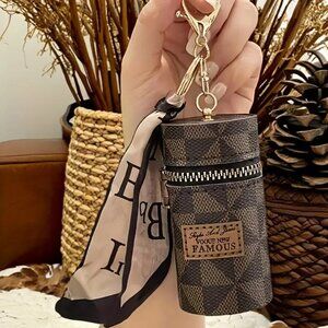 Stylish Mini Bag Charm w/ Scarf for Lipstick, Earbuds, Car keys w/Keychain Clip