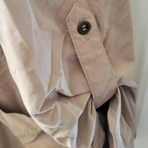 Elegant and formal outerwear that feels casual! Super soft, lightweight, and stylish, with deep front pockets and a hood. Polyester material. Listed as a large but could fit all sizes under, too!