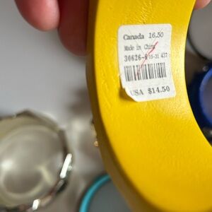 The only bangle in this bunch that fits over my extra-large woman’s hand is the big plastic gold one.