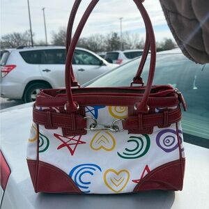This chic handbag features a vibrant multicolor design with red accents, perfect for adding a pop of color to any outfit. Ideal for everyday use, it combines style and functionality.