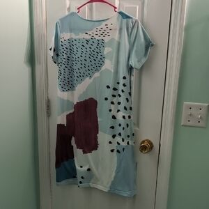 Embrace a chic look with this stylish multicolor abstract dress. Perfect for any occasion, it features a blend of blue, white, and purple hues. Elevate your wardrobe with this versatile piece.