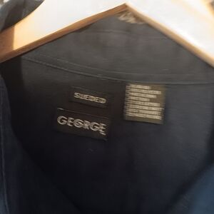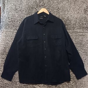 Stylish Navy Bleu Long Sleeve Shirt Soft faux Suede Texture Size 46
