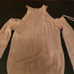 Elevate your wardrobe with this stylish off-the-shoulder sweater. Its soft tan hue adds a touch of warmth and elegance to any outfit.