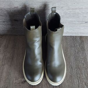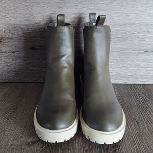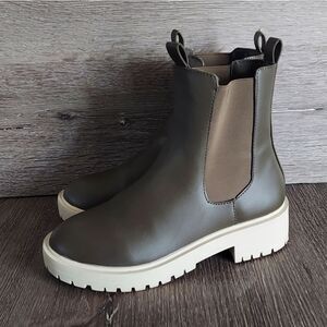 The Drop Women's Saviah Chunky Sole Pull-on Chelsea Boot, Olive/Pastel Green
