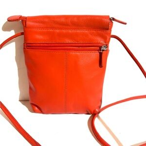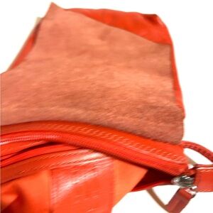 Elevate your style with this vibrant orange crossbody bag. Perfect for any occasion, it adds a pop of color to your outfit. Main compartment 1 zip pocket closure at interior wall fabric lining open pocket at front zip pocket at back corners have stains hight 8” wide 6.5” depth 1.5” strap drop 25”The dimensions are based on approximately measurements before placing an order please check take a moment to view all photos using feature for a closer look
