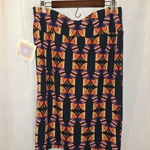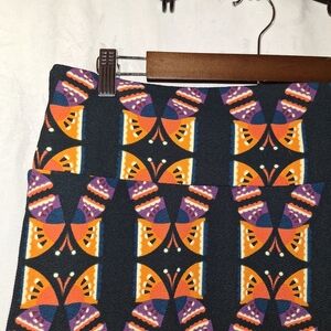 Elevate your wardrobe with this chic orange and purple patterned skirt. Perfect for any occasion, this skirt offers a vibrant and stylish look. side to side measurements is 17" top of waist to bottom hem is 26.5 " bundle more items for bigger deals Bin-148