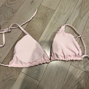 Trendy pink floral bikini top with adjustable ties. Ideal for sunny beach outings.