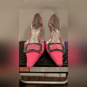 Step out in style with these chic pink heels featuring a bold buckle design. Perfect for adding a pop of color to any outfit.
