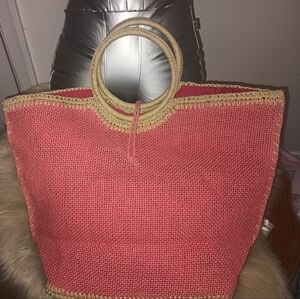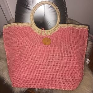 Stylish Pink Woven Tote Bag
