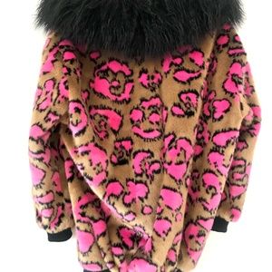 Elevate your style with this chic leopard print jacket. Featuring vibrant pink and brown hues, this jacket is perfect for making a bold fashion statement. Stay warm and stylish with its cozy design.