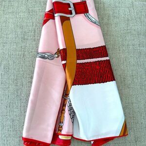 Large Chic scarf features a captivating blend of pink and red hues, adorned with a geometric and abstract design. Its long, rectangular shape makes it a versatile accessory, perfect for adding a touch of sophistication to any ensemble.