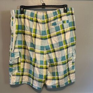 Dive into summer with these stylish plaid swim trunks. Featuring a cool mix of blue, green, and white, they're perfect for beach adventures.