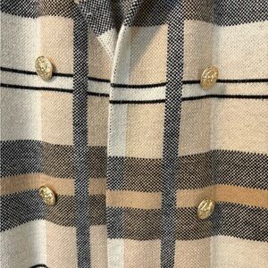 Elevate your wardrobe with this chic plaid coat. Featuring a blend of cream, gray, and brown tones, this coat is perfect for any occasion. Stay warm and stylish all season long.