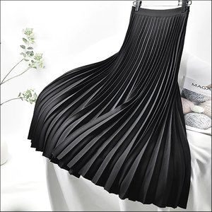 Features permanent pleating, lined underskirt, roll free side zip waistband.