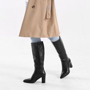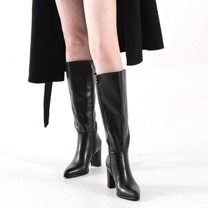 Features: These knee-high boots feature a chic pointed toe and a smooth zip for a clean, modern look. The chunky 3.35-inch heel adds height while ensuring stability and comfort, perfect for all-day wear. Crafted from durable PU leather with a soft lining and flexible rubber sole, they provide style and long-lasting comfort for everything from work to weekend outings.