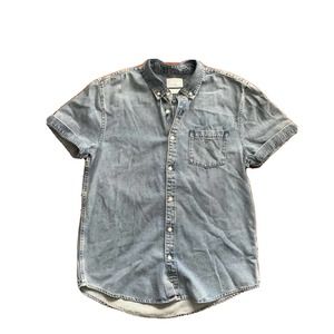 Stylish Primark Men’s Blue Denim Button-Down Short Sleeve Shirt Size XL
