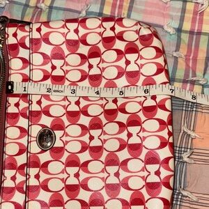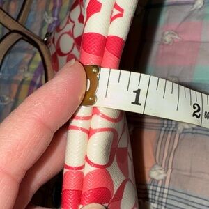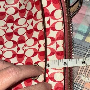 This is the Coach Peyton Dream C bag from Y2K. Perfect for any occasion, this bag combines fashion and functionality. Some callouts on the bag. Appears to be color transfer. Also some edging issues on the strap. The strap is still sturdy and not really noticeable. Inside has some minor stains. I have not tried to clean it.