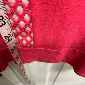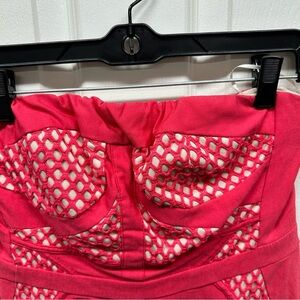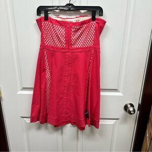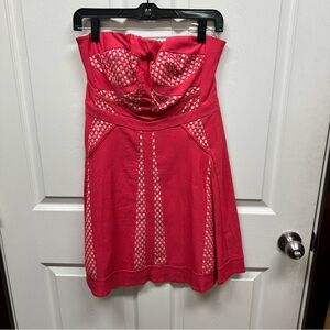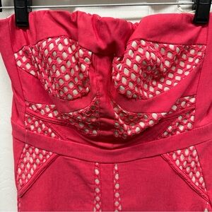 Chic strapless dress in vibrant red with unique mesh detailing. Perfect for a night out.
