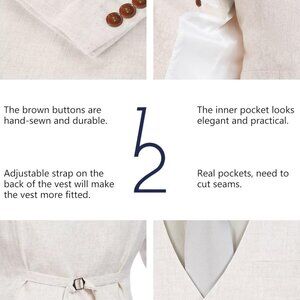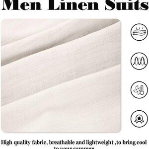 Features: This men's linen suit is all about breathability and style, made from a lightweight cotton-linen blend that keeps you cool in warm weather. The slim fit, two-button notch lapel jacket paired with matching pants and vest creates a versatile, polished look—ideal for beach weddings, cocktail parties, or just making a fashion statement at any holiday gathering. Its natural fibers ensure good airflow and moisture absorption, making it super comfortable to wear for hours. Note: Light-colored underwear is recommended for a seamless look.