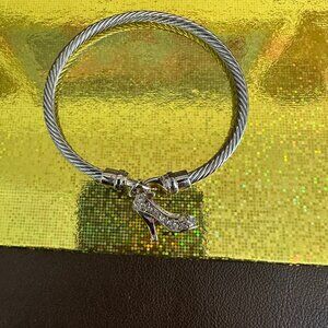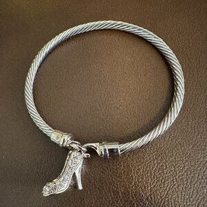✨ Stylish Silver-Tone Cable Wire Bracelet with High Heel Charm ✨