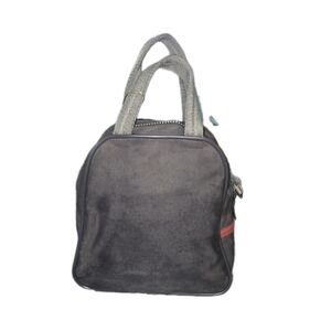 Stylish Small Vintage Authentic Prada Black & Gray With Red Accent Nylon Handbag