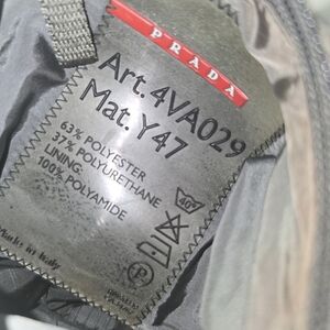Chic authentic vintage Prada handbag in black and gray with red accents. Perfect for everyday use.