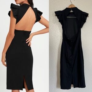 Stylish Splendor Black Backless Ruffle Bodycon Midi Dress