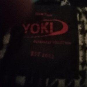 I have a beautiful spring jacket that has never been worn. I purchased it but it didn't fit me in the front. It is plaid with faux leather sleeves. It is a zip up jacket with three small pockets in the front. The jacket is black and white and has little stars all over it. The brand is called Yoki and it was made in china. It is an XL jacket and very cool!