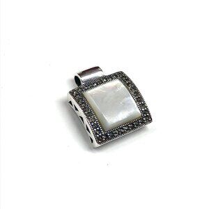 Stylish Sterling Silver Pendant Mother of Pearl Marcasite Stone Pendant