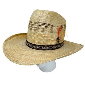 Item in Excellent Preowned Condition. Appears unworn, Quality Hat, All secure and tightly woven. Boho hat band with feathers.