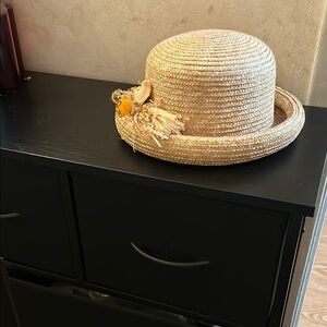 Chic straw hat featuring a charming yellow accent. Perfect for sunny days.