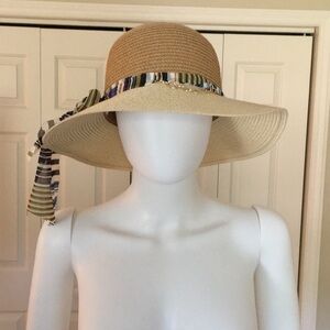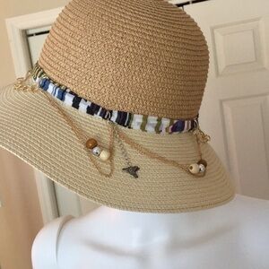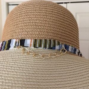 100 % Paper strap. Measurements approximate. Great condition. Perfect for spring thru summer. Is bejeweled as seen in pics.