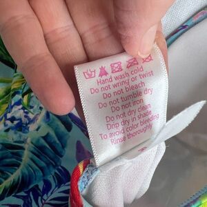 Stylish Swimwear Triangle Top Tie Side Tropical Pattern Deep V Swimsuit Sz LG