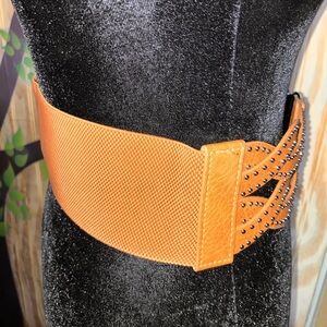 Elevate your outfit with this chic tan belt featuring elegant metallic accents. Perfect for adding a touch of sophistication to any ensemble.