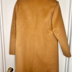 This gorgeous wool and cashmere blend coat features a fun fringe front, hidden buttons, welt pockets, and a back vent. Versatile for office wear or layering over jeans.