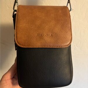 Elevate your style with this chic tan and black crossbody purse. Perfect for daily adventures, it combines practicality with a modern look.