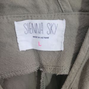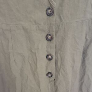 Chic tan jumpsuit with button details. Sleeveless design. Perfect for casual outings. Junior size L fits like a M