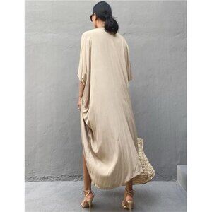 *It’s light weight & flows beautifully. Quite versatile. It’s plenty big enough to fit most anyone with room to spare. I’m 5’4, size 14 & top heavy. Very comfortable, and appears to be sewn together well.