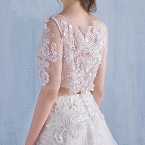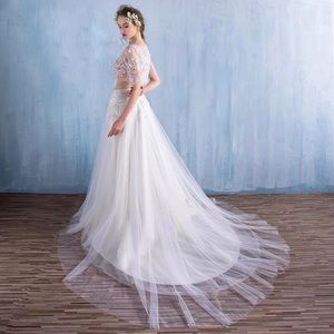 Main materials: tulle, lace, satin, polyester, sequins and Czech rhinestones.