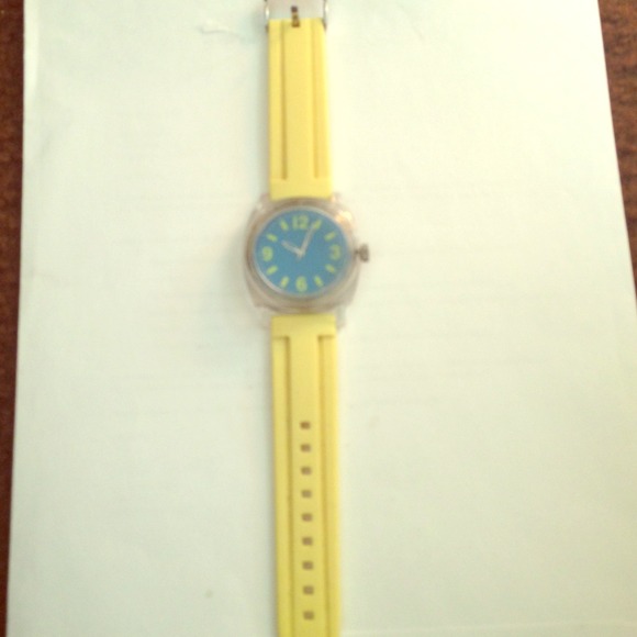 Yellow and blue watch. Still ticks. Didn't wear it much. Just sat in my closet.