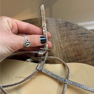Elegant wedge sandals with sparkling rhinestone straps. Perfect for summer outings.