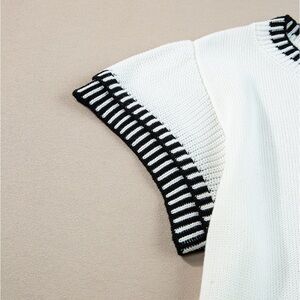 Elevate your wardrobe with this chic white and black sweater. Perfect for any occasion, it offers a stylish and comfortable fit.