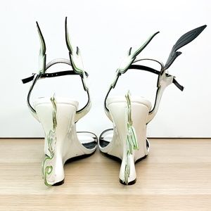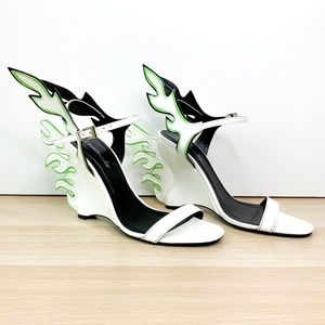 Step up your style with these eye-catching white and green flame wedges. Perfect for adding a bold touch to any outfit.