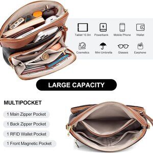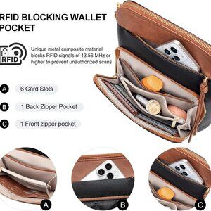 Features: Crafted from soft PU leather with a sleek, stylish silhouette. Multiple pockets including a zippered main compartment, hidden back pocket, front phone pocket, and RFID-blocking wallet pocket with six card slots. Sturdy hardware, easy to clean, with a casual yet fashionable vibe.
