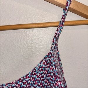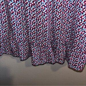 Elevate your wardrobe with this chic patterned dress. Featuring a blend of red and blue hues, it's perfect for any occasion.