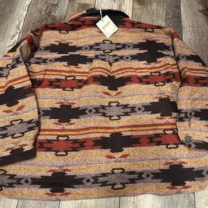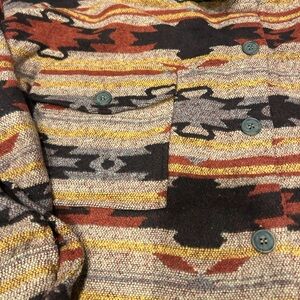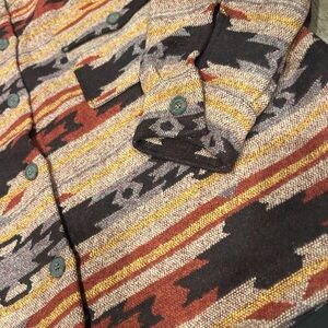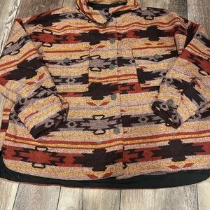 Elevate your wardrobe with this chic patterned utility jacket. Featuring a blend of warm colors, it's perfect for adding a touch of style to any outfit.